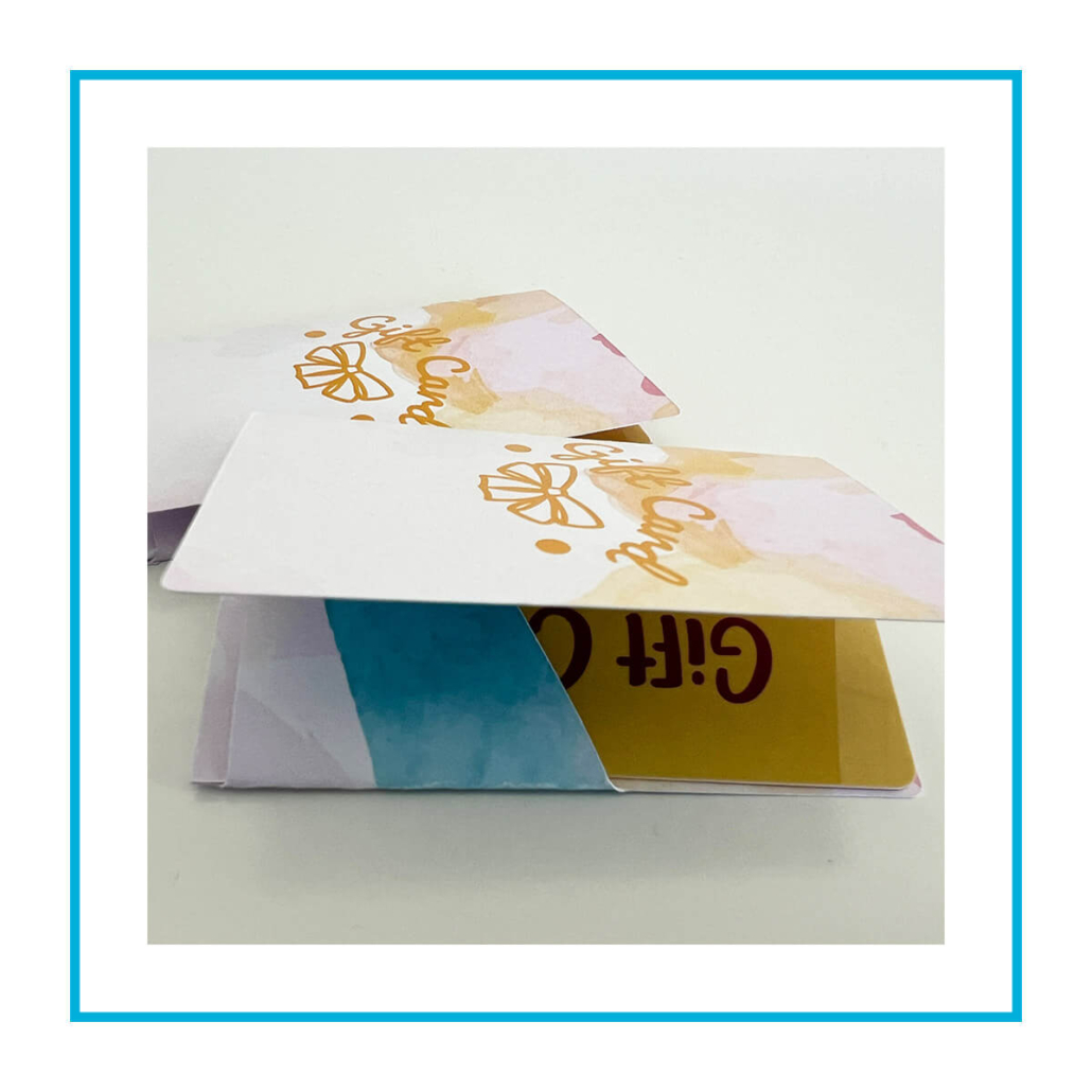 I porta Gift Card Folder 2 saranno forniti personalizzati con la tua grafica. Le Card e lo sviluppo grafico sono esclusi e vanno eventualmente acquistati a parte.